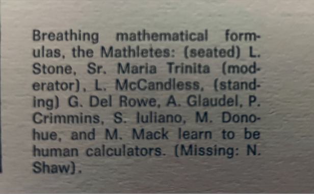 She recalls the dynamic between Bonner and Prendie with humor, “We would joke that the alleyway between Bonner and Prendie was the ‘no zone.’ The nuns would not be happy if you were in that alleyway.”